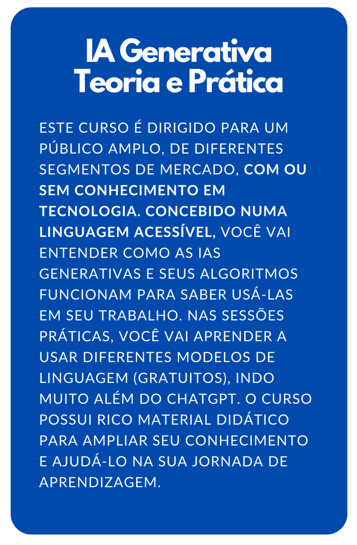 inscrições abertas para a próxima edição do curso online live "IA Generativa - Teoria e Prática", com Prof. Ricardo Murer.